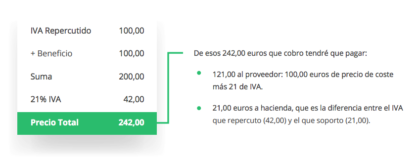 B. Para hallar tu precio de coste debes tomar los importes IVA excluido, es decir, lo que te cobra el proveedor pero sin tener en cuenta el IVA soportado.